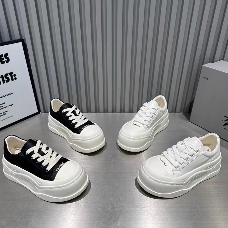 英伦风真皮厚底松糕小白鞋女2025春新款圆头系带百搭软底增高板鞋