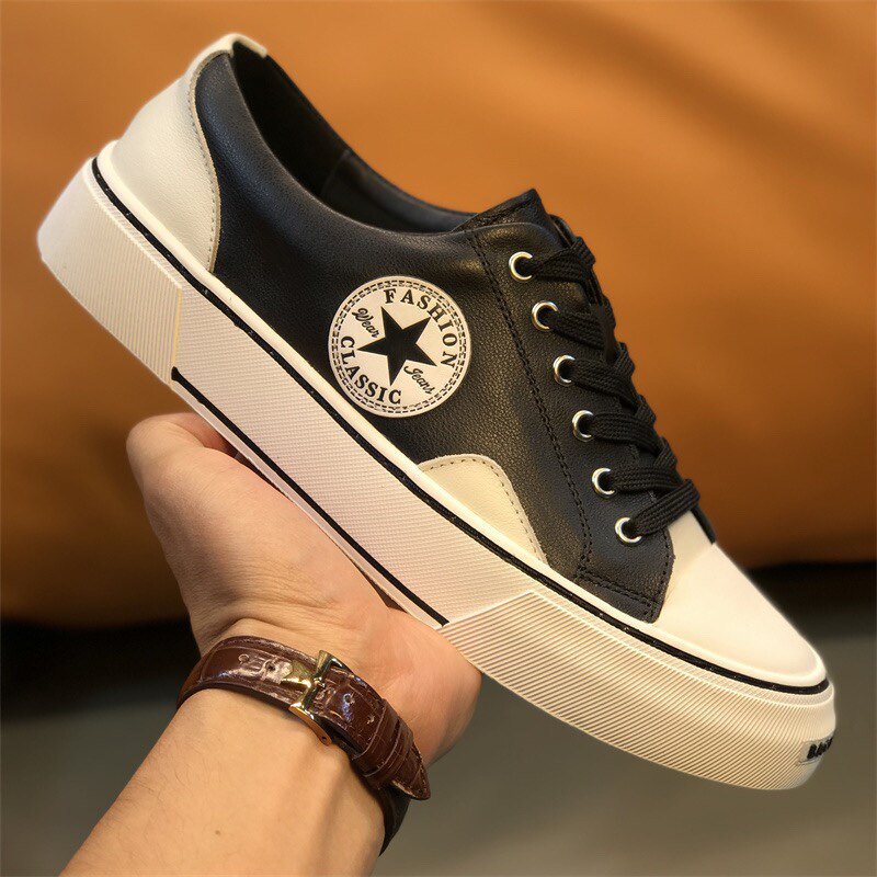 五角星男鞋欧洲站真皮板鞋男白色青春潮流休闲鞋英伦风小白鞋轻奢