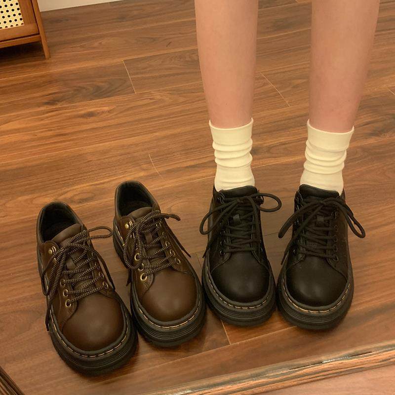 棕色复古英伦风小皮鞋女2025夏季新款厚底增高百搭单鞋马丁鞋子