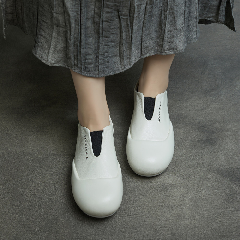 原创小众小白鞋2026春季新款真皮英伦风圆头软底浅口套脚女鞋单鞋