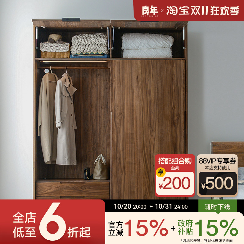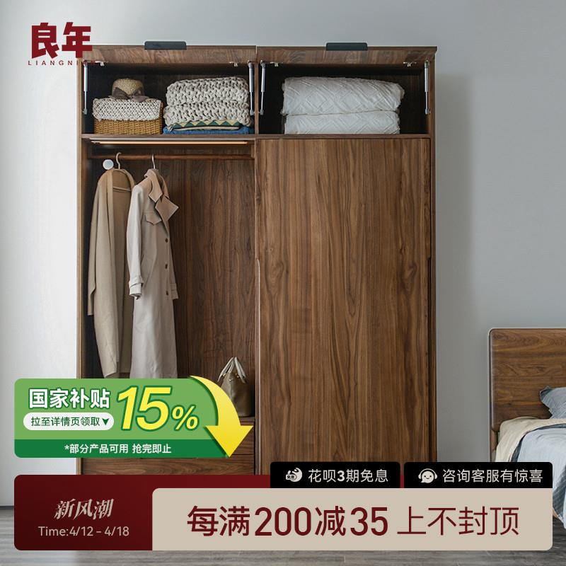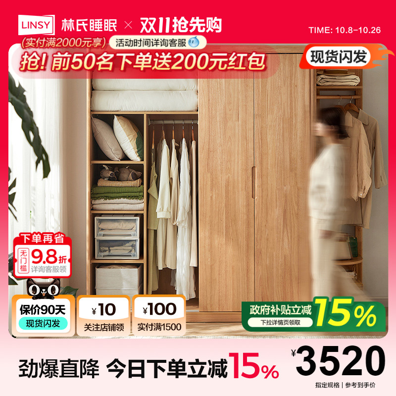 林氏家居卧室推拉门衣柜实木门板原木风移门柜子家用滑门衣橱木业