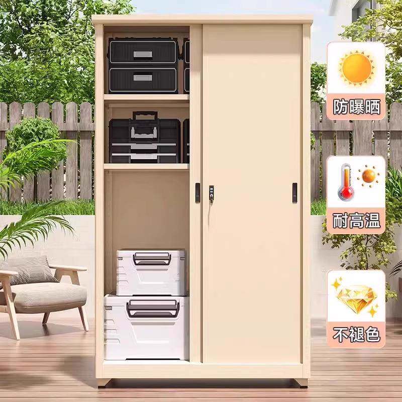 家用阳台储物柜防水防晒移门柜落地靠墙一体大容量户外阳台收纳柜
