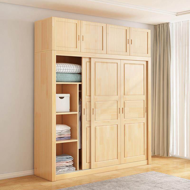 全实木衣柜家用卧室推拉门松木移门简易衣橱支持定制原木儿童衣柜