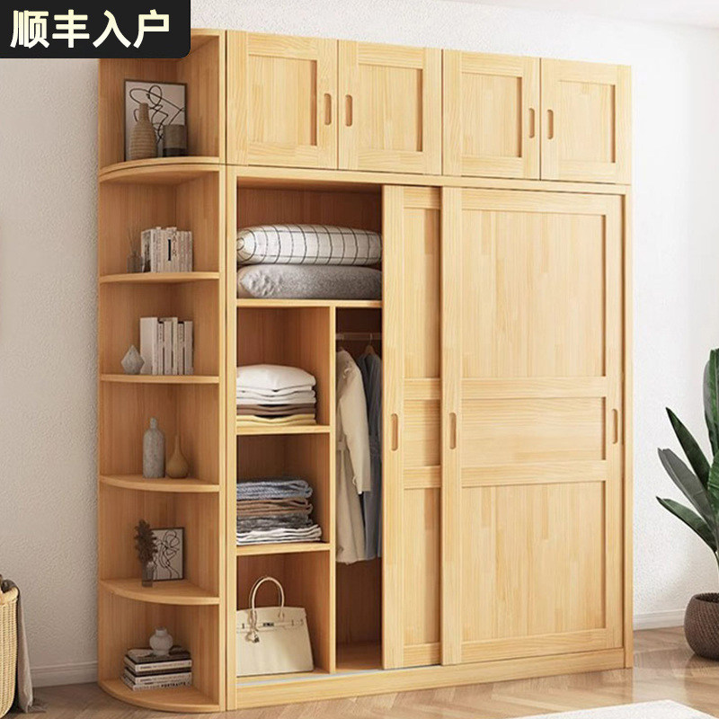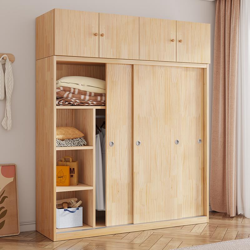 实木衣柜家用卧室新款2025爆款松木推拉门原木衣橱小户型移门柜子