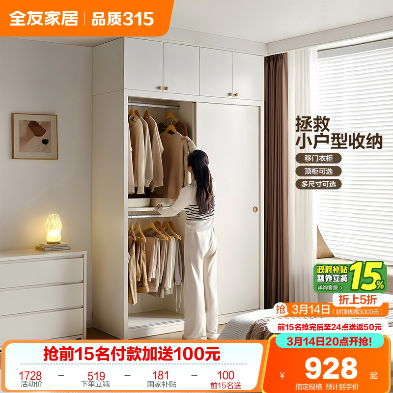 政府补贴全友家居2026新款推拉门衣柜柜子卧室家用小户型移门衣橱