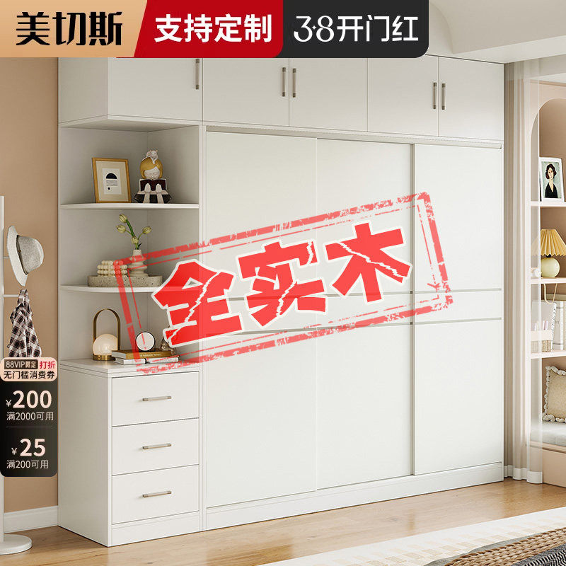 政补ENF级实木推拉门衣柜家用卧室奶油风小户型移门柜子趟门衣橱
