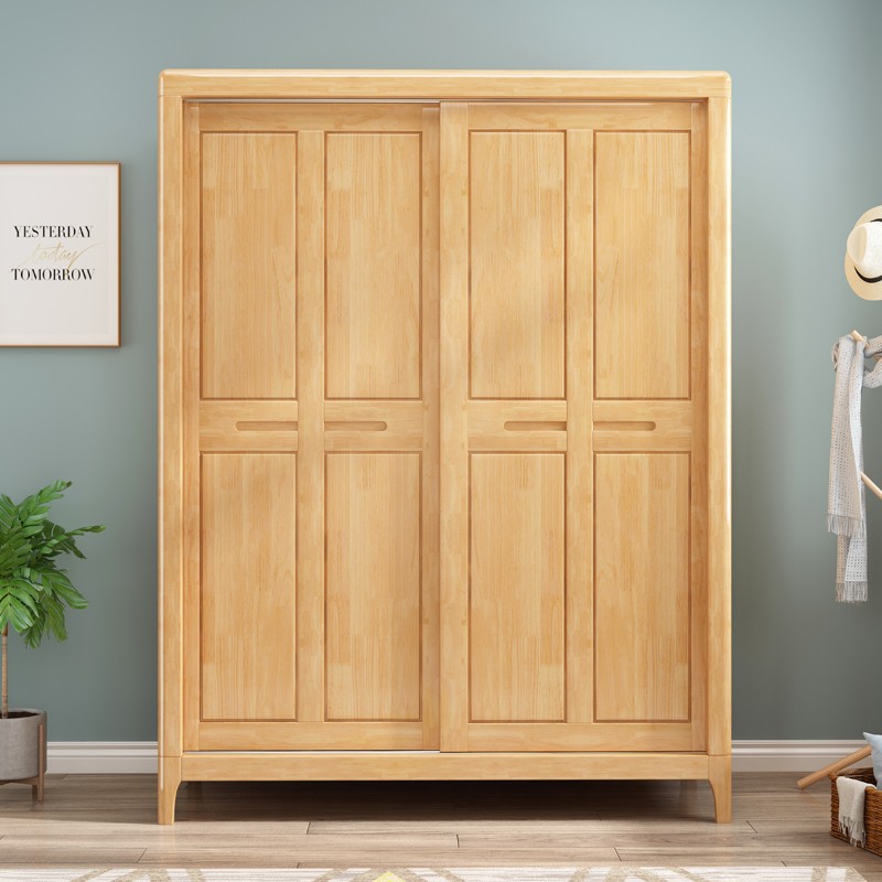简约现代实木衣柜推拉门卧室家用松木2门滑移门柜子中式原木衣橱