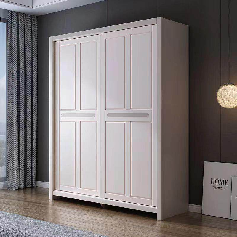 代简965约实木衣推拉门大卧室家用2门3门滑现移门柜子白色原木柜