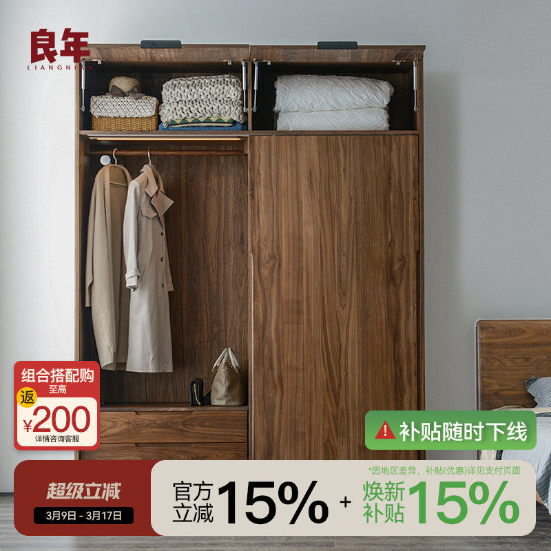 【品牌秒杀】全友家居中古风推拉门衣柜卧室家用衣橱新款移门柜子