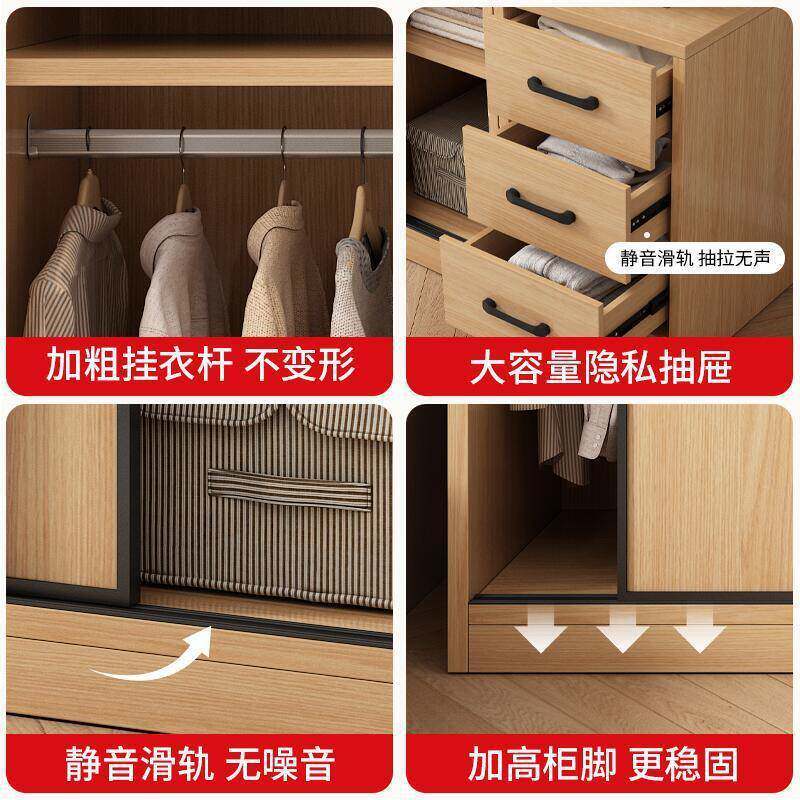 衣柜家用卧室推拉门衣橱出租房用小户型现代简约储物收纳移门柜子
