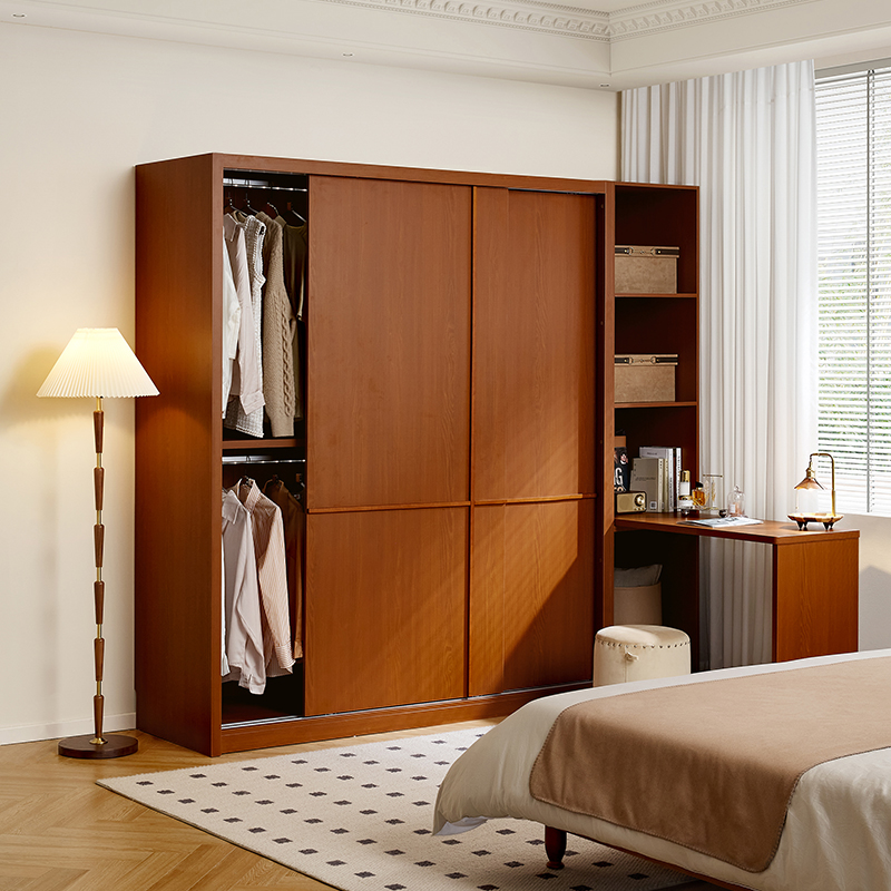 定制实木推拉门衣柜家用2024爆款衣橱胡桃木色中古风橡木移门柜子