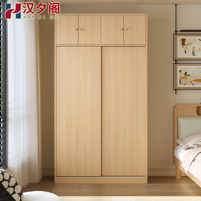 衣柜卧室家用推拉门实木衣橱原木小户型移门收纳柜出租房儿童柜子