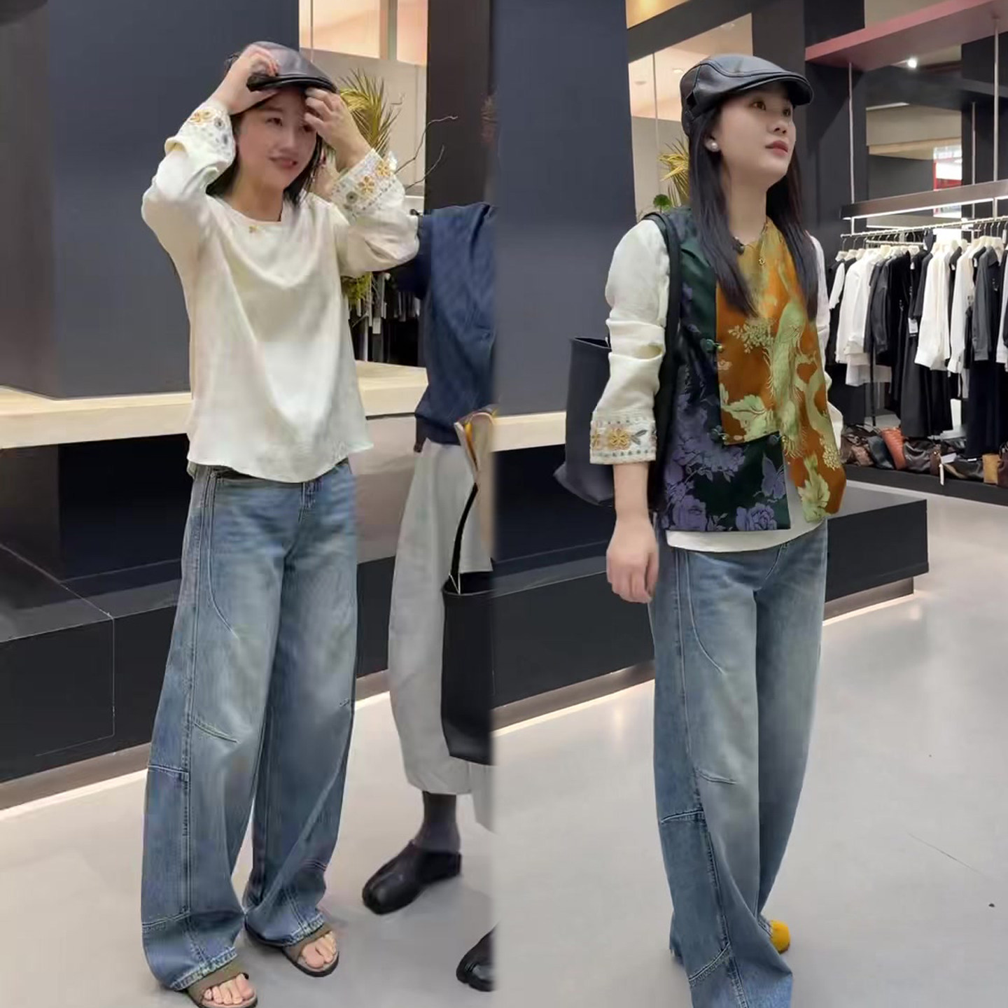 小众个性时尚套装女2026春季新款拼色国风马甲+小衫+弯刀牛仔裤潮