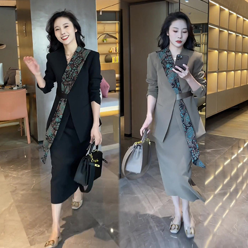 欧洲站个性显瘦2025年秋冬新款时尚套装女西服外套半身裙两件套装