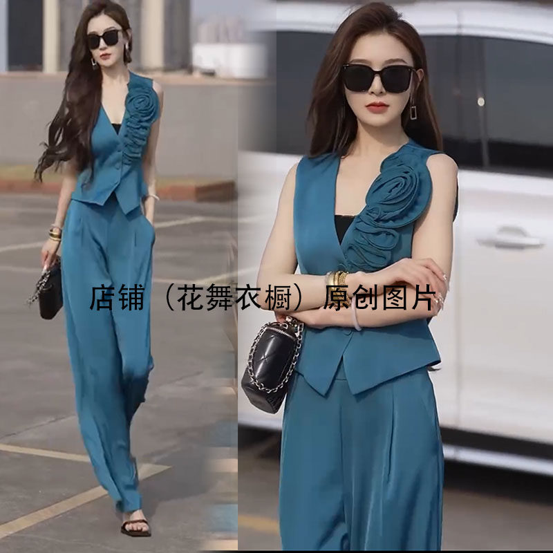 欧洲站西装马甲套装女2025新款立体花朵无袖马夹阔腿裤两件套个性