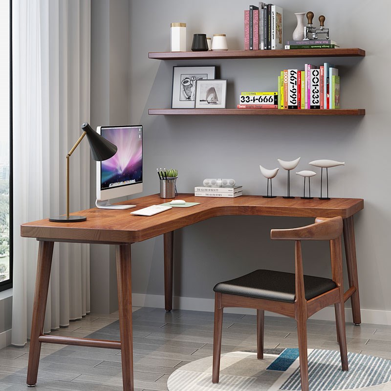 实木L型书桌转角电脑台式桌角落桌子靠墙卧室家用简约异形办公桌