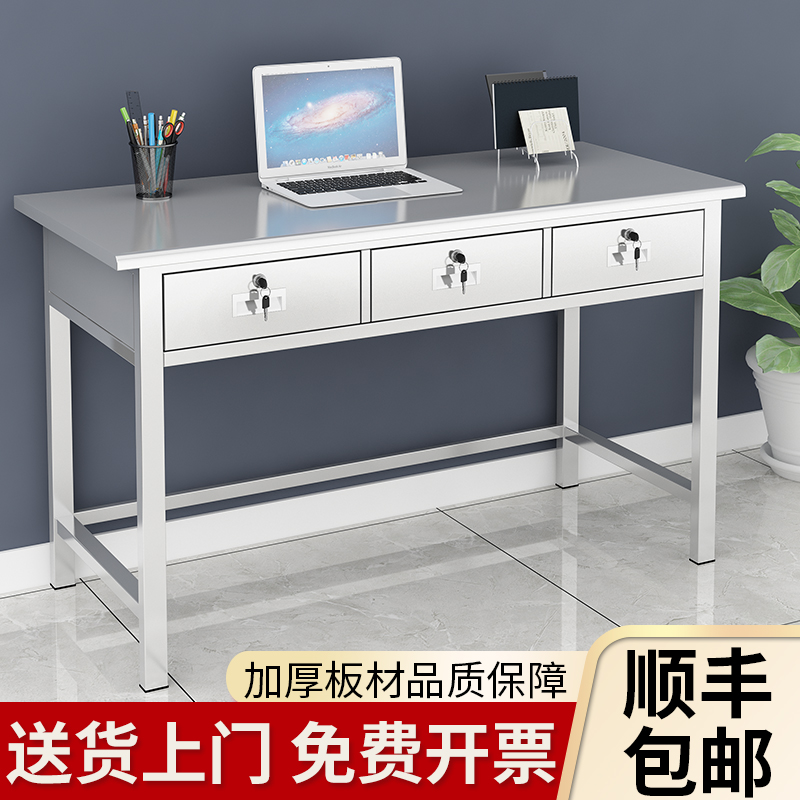 304不锈钢办公桌电脑台式桌子带抽屉车间长方形工作台书桌定制