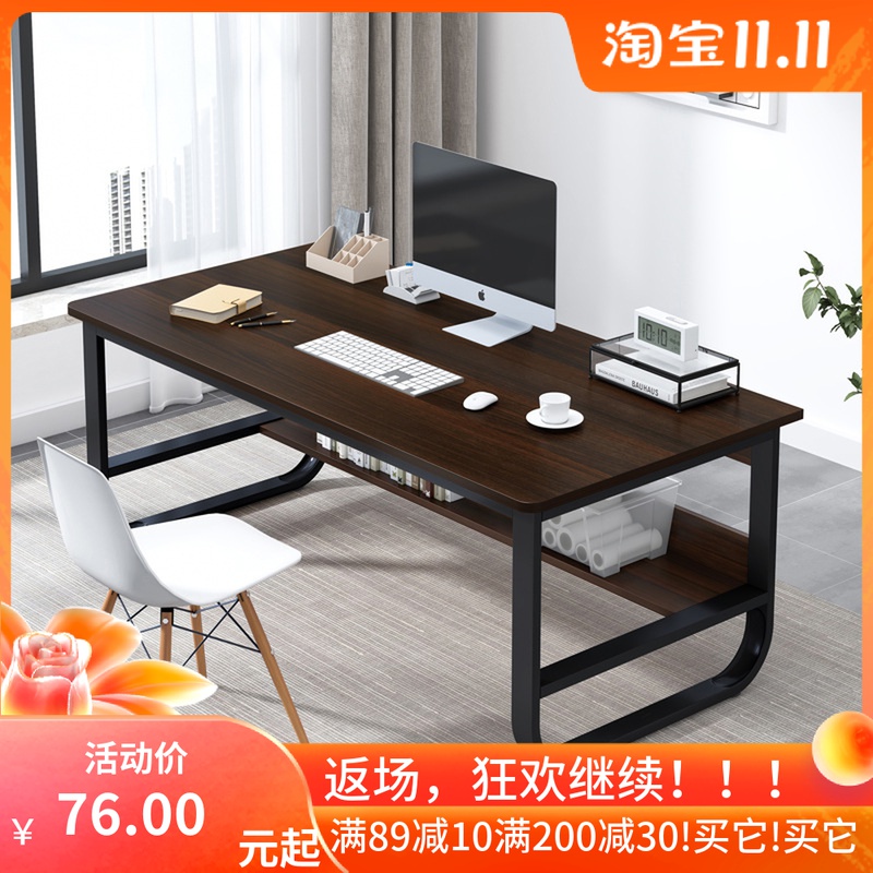 双人电脑台式桌卧室简约现代钢木书桌写字学习桌办公桌电竞一体桌