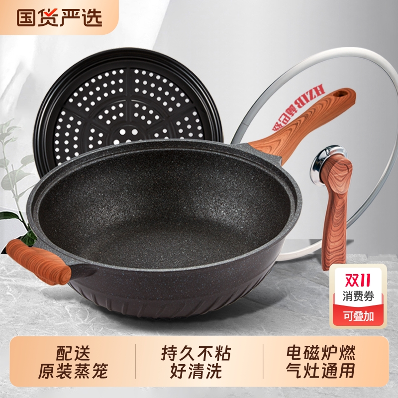 麦饭石炒锅不粘锅家用炒菜无油烟燃气灶电磁炉专用炒菜锅正品锅具