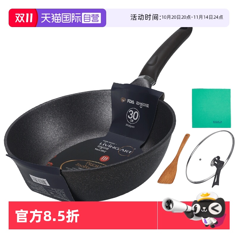 韩国麦饭石炒锅不粘锅原装进口kitchenart炒菜锅家用麦饭石锅不粘