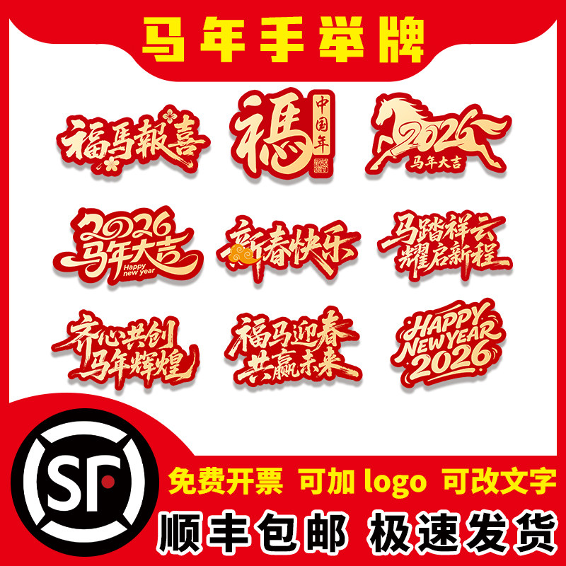 2026马年手举牌定制异形KT板手持拍照运动会团建pvc雪弗板春节货