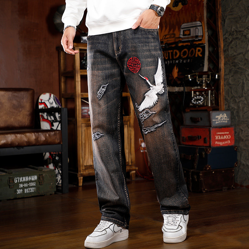 麻裤男宽松中国风男装春秋中国风唐装裤子男宽松直筒男士休闲长裤