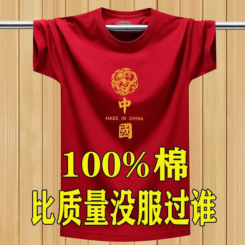 中国风纯棉短袖t恤男宽松大码半袖红色本命年T恤汗衫百搭国潮体恤