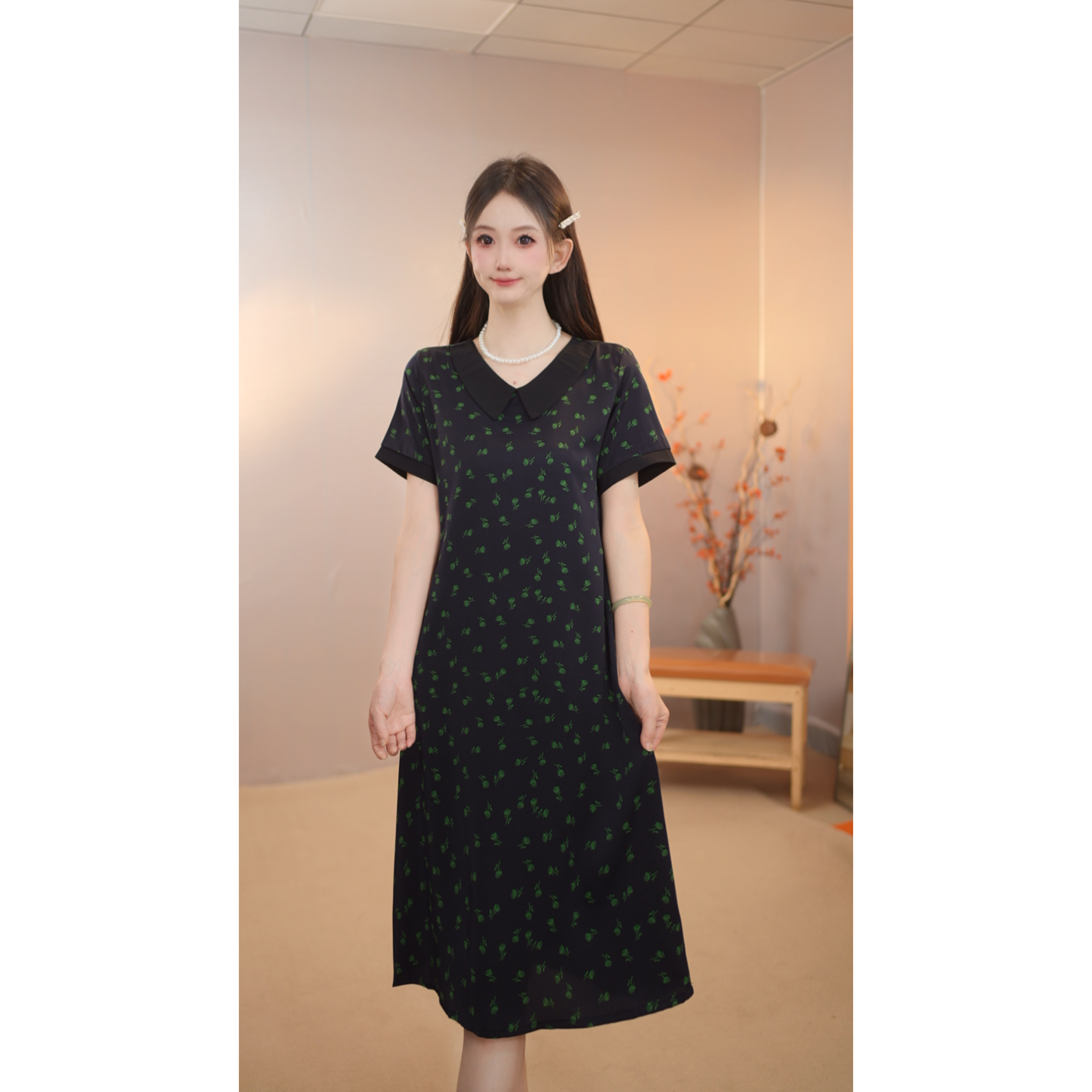 春季时尚洋气休闲气质女士碎花中长款遮肚中老年妈妈装女装连衣裙