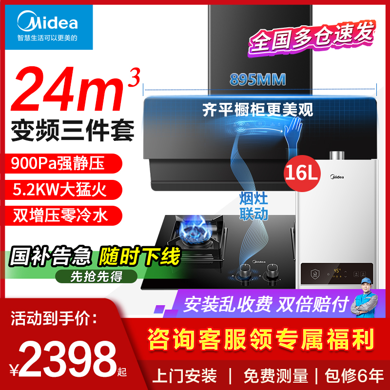美的变频抽油烟机燃气灶套装烟机灶具消毒热水器家用厨房三件套餐