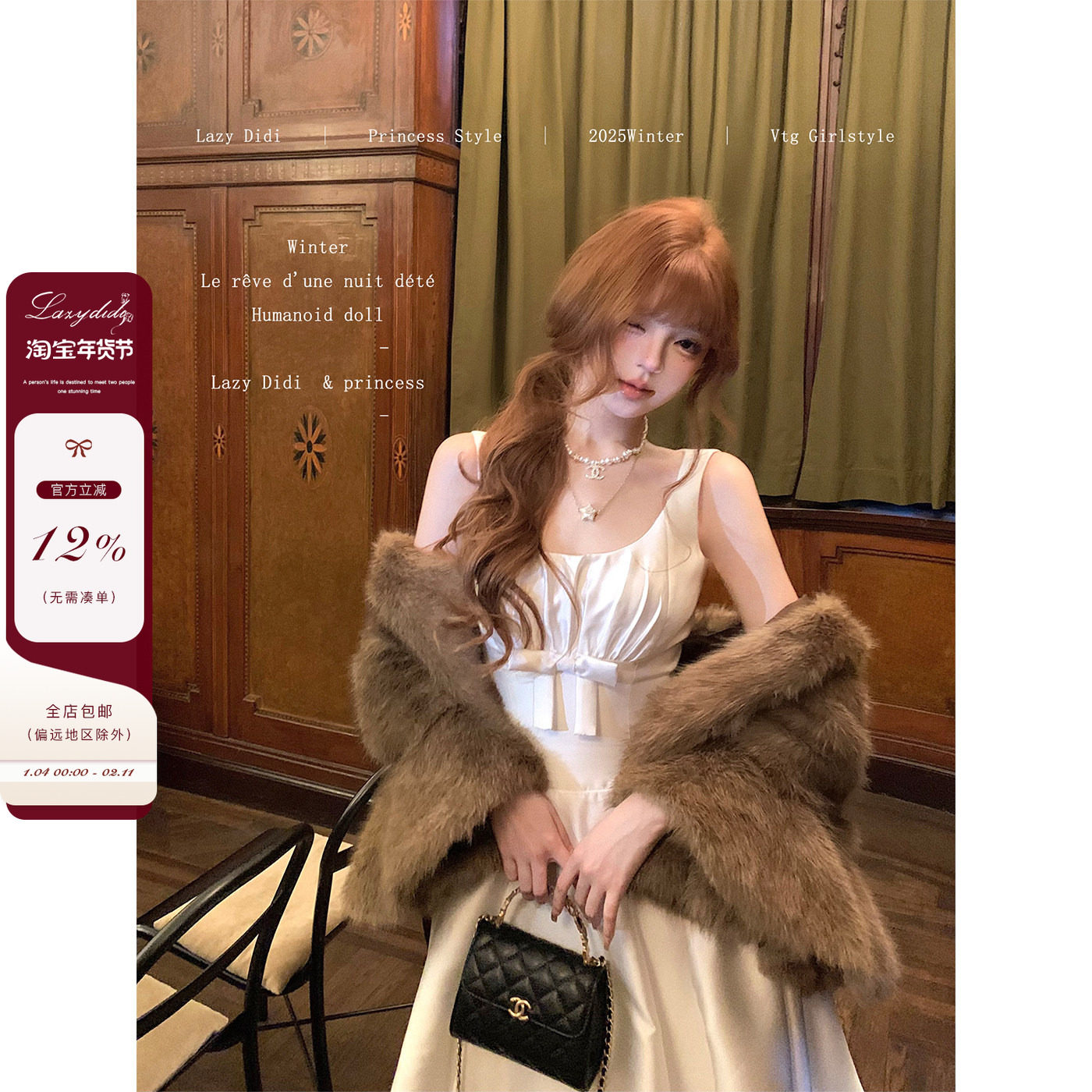 Lazy Didi京洛佳人 矜贵千金大裙摆连衣裙收腰显瘦公主长款礼服裙