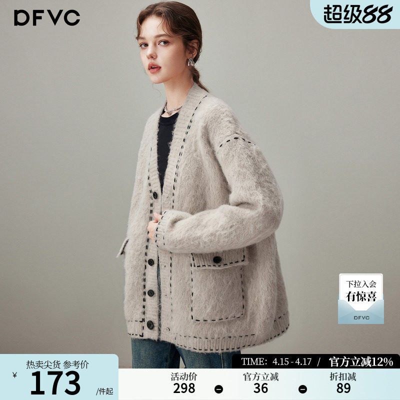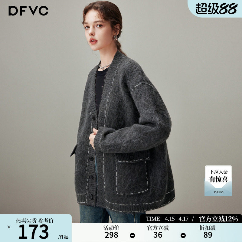 dfvc灰色慵懒风羊毛中长款针织外套女2026年春季新款宽松开衫毛衣