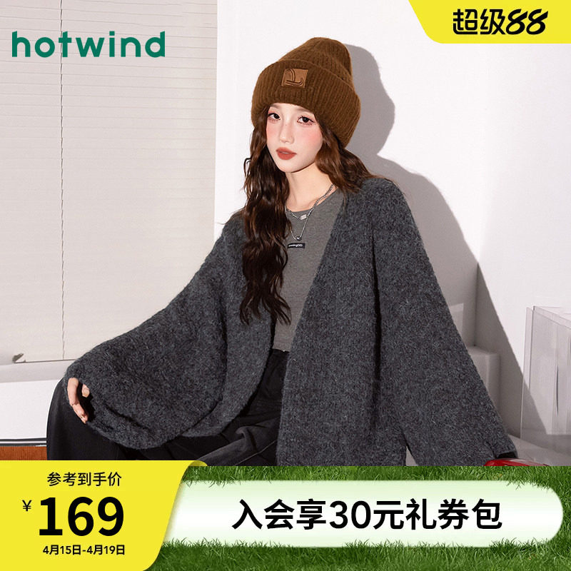 alex stevens慵懒风V领针织开衫羊毛衫女秋季宽松薄款中长款外套