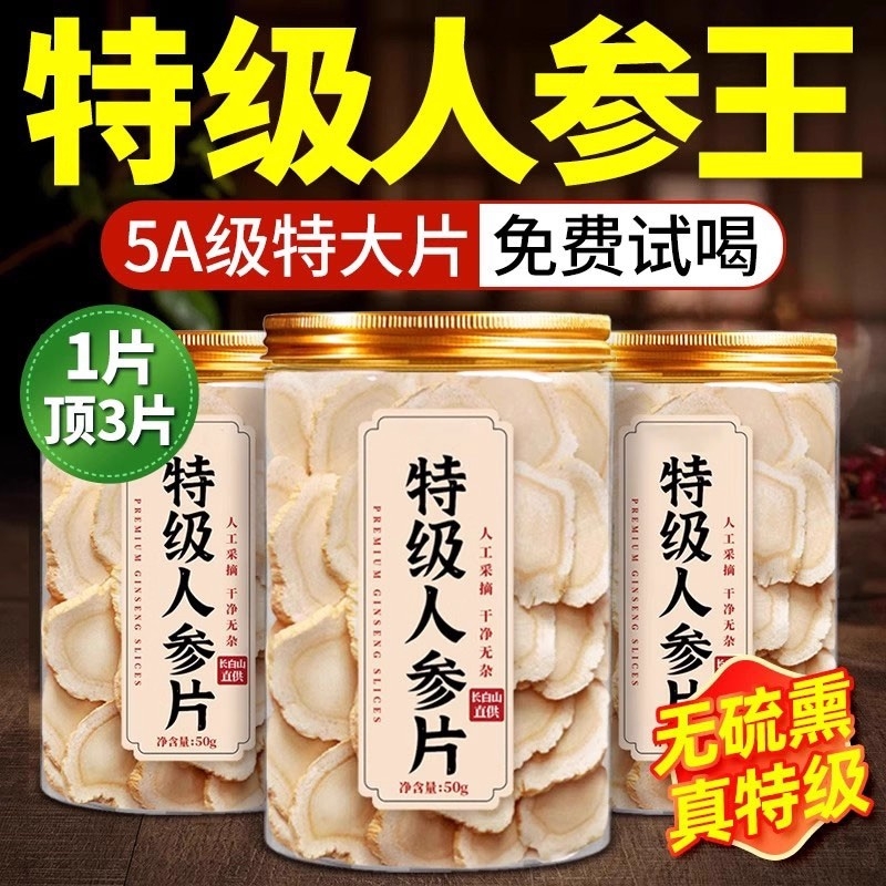 长白山人参片官方旗舰店正品中药材野山参正宗白参粉切片新鲜泡水