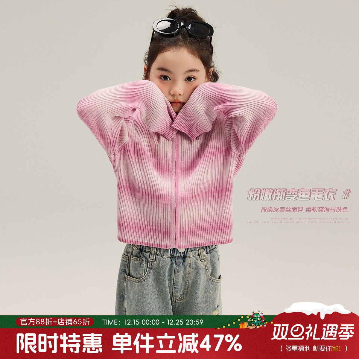 夏生 原创彩虹条针织衫 男女童连帽开衫保暖毛衣儿童毛衫秋装新品