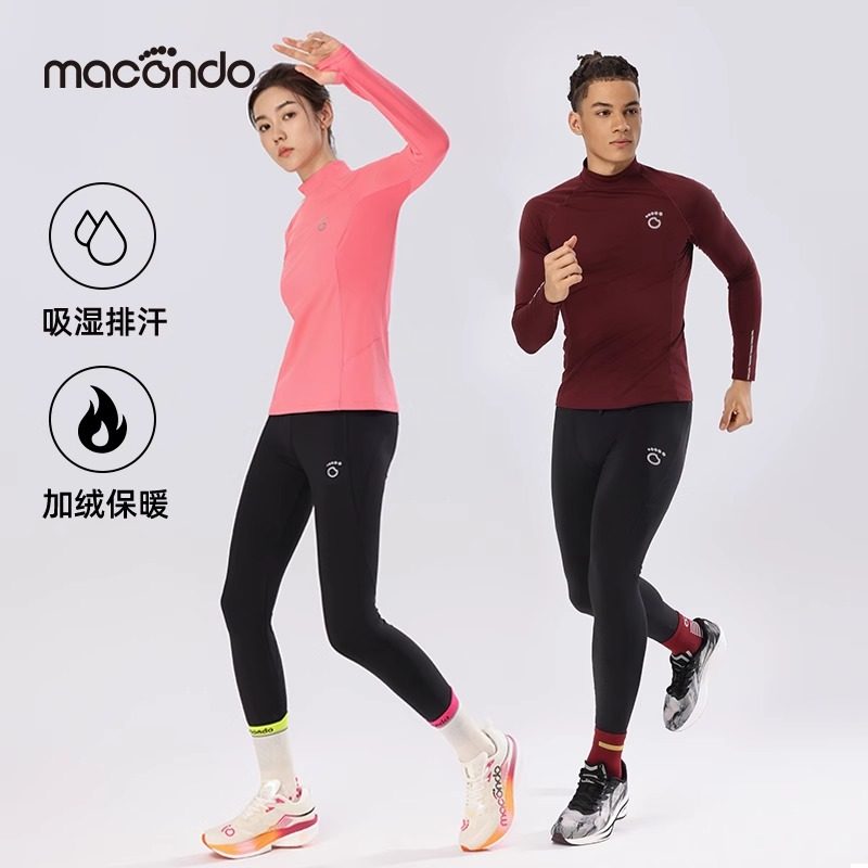 马孔多品牌2024秋冬新款男女士圆领加绒跑步运动健身吸汗速干套装