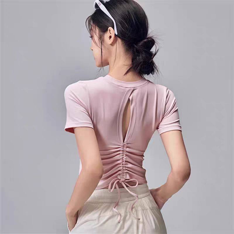 运动跑步速干套装女新款宽松瑜伽服短袖短裤普拉提训练服健身上衣