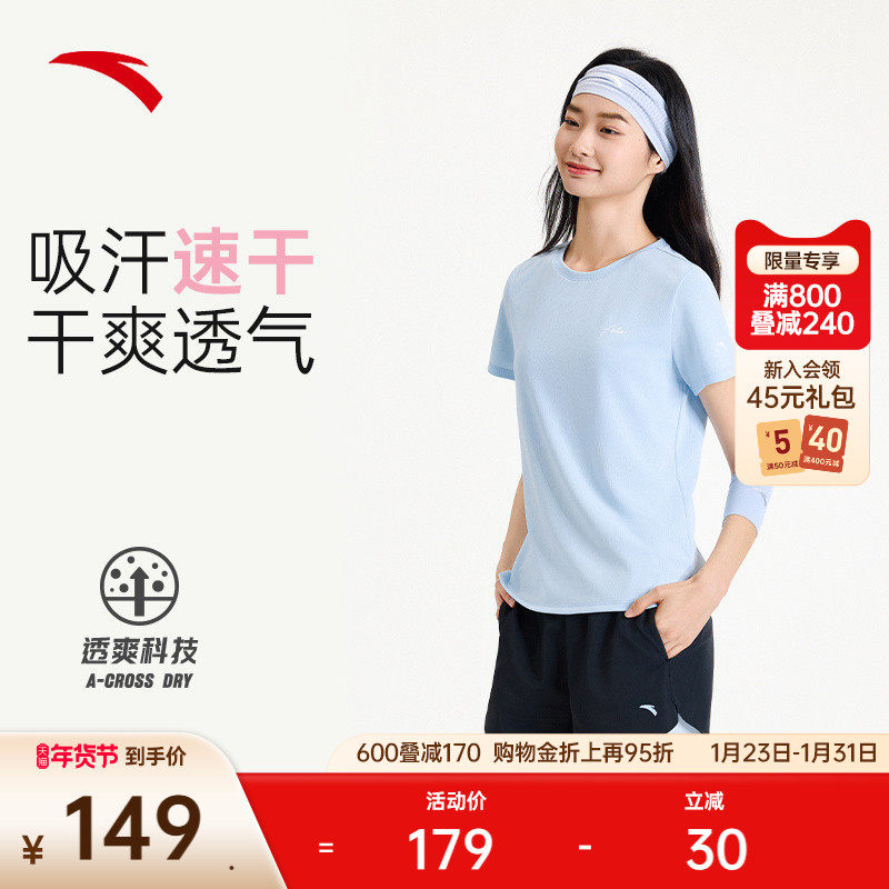 安踏速干套装丨运动套装女士夏季体测健身短袖透气跑步短裤休闲套
