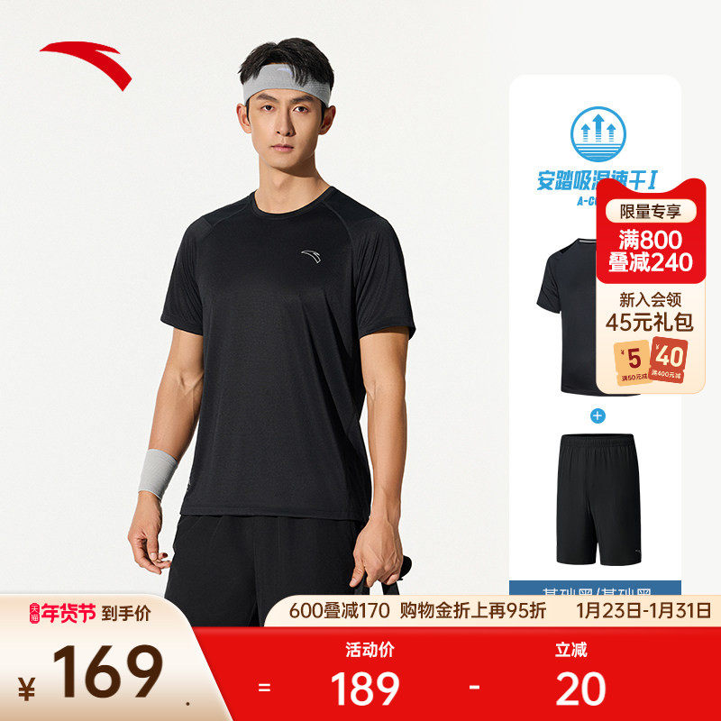 安踏速干套装丨运动短袖t恤短裤两件套男夏季新款透气跑步训练服
