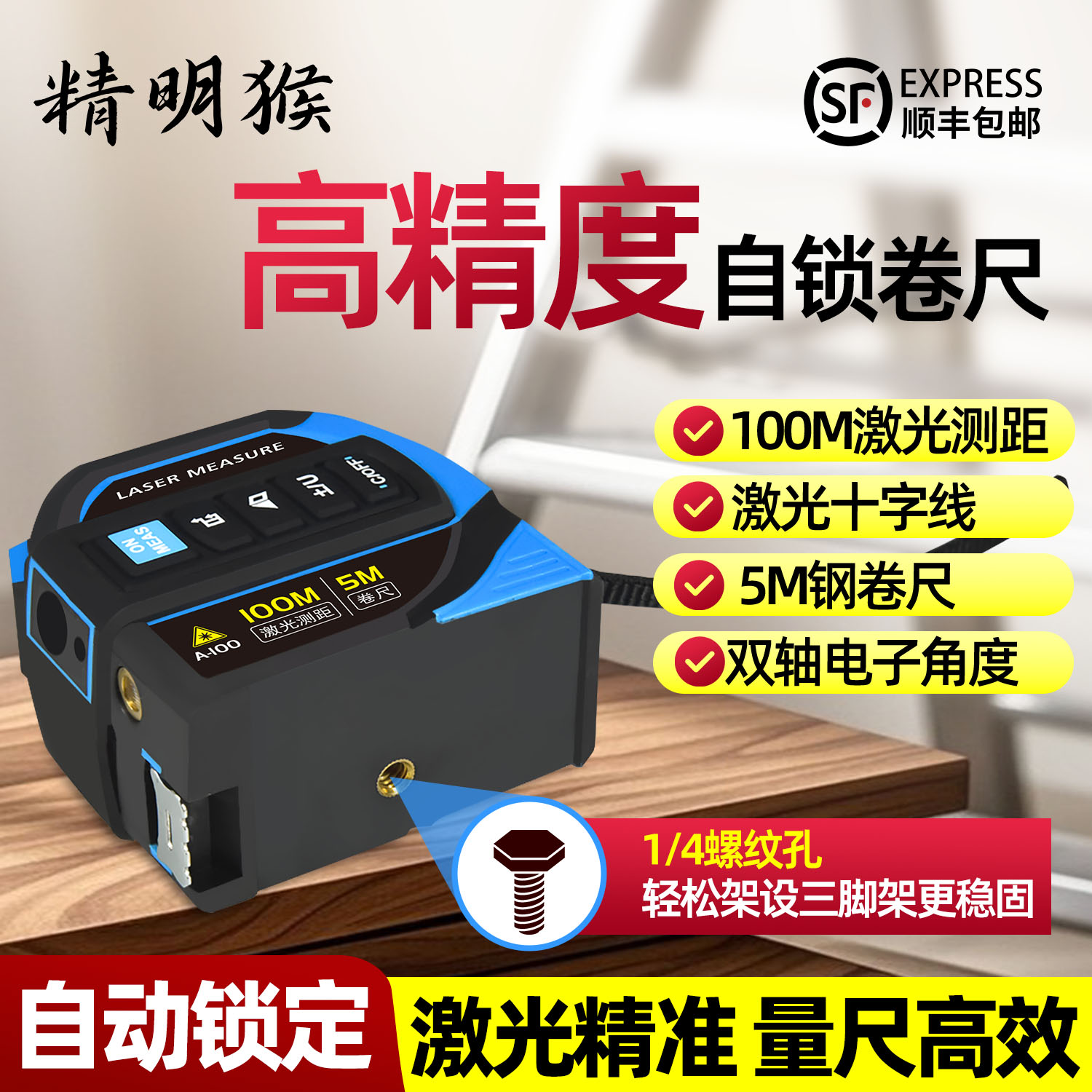 精明猴激光测距仪高精度电子尺红外线测量工具户外手持尺子钢卷尺