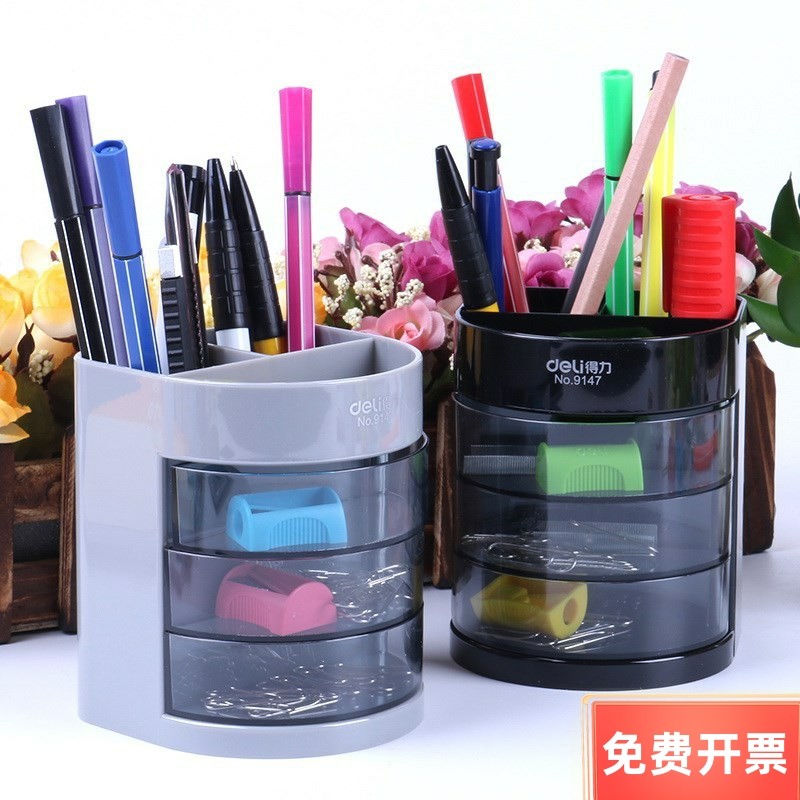 得力9147多功能笔筒 办公商务 塑料得力笔筒 笔座 笔筒创意时尚