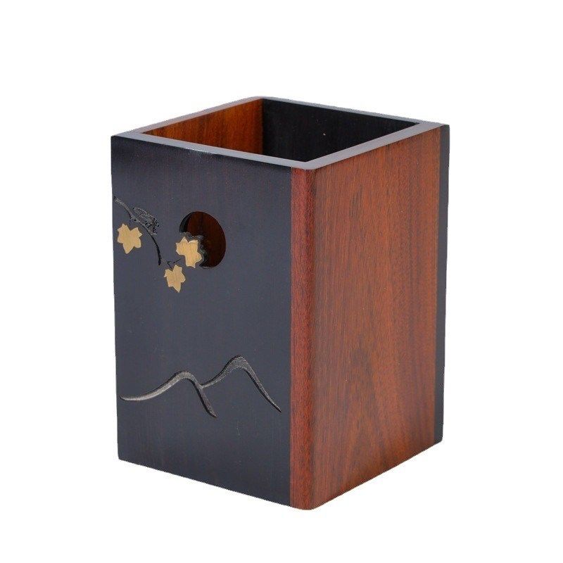 创意实木笔筒 办公桌面收纳黑檀木笔E筒 木质学校毕业文创纪念礼