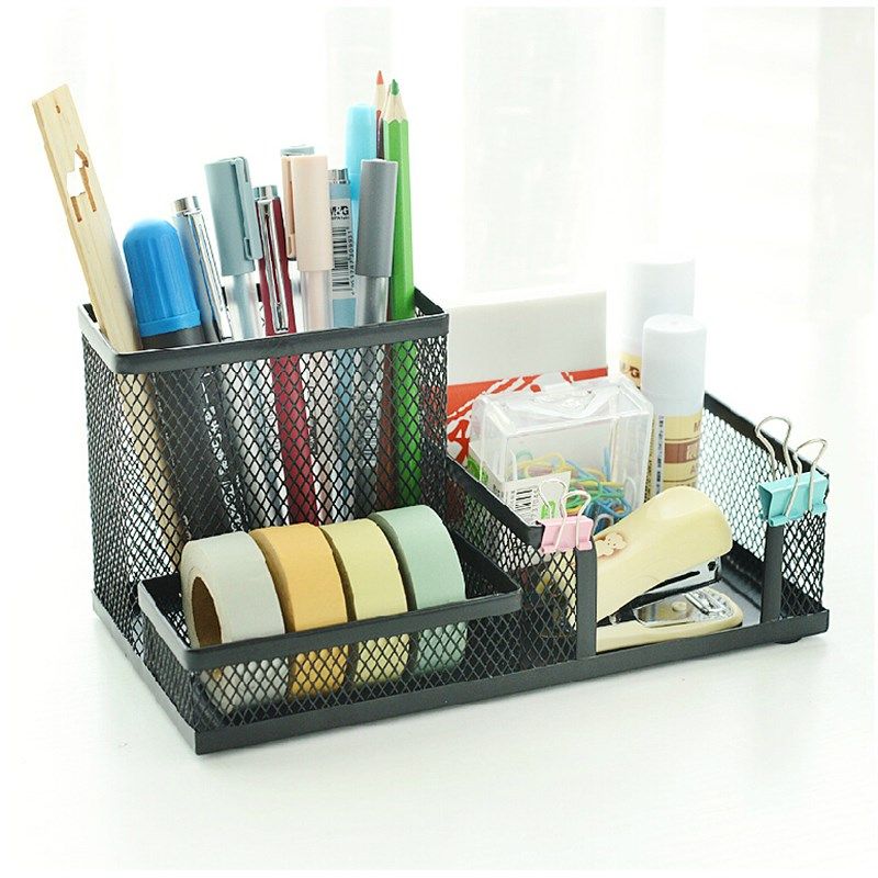 铁笔筒收纳盒办公室装笔的收纳盒商务前台金属笔桶学生桌面文具收纳简约现代多功能型大容量收纳创意多格笔筒