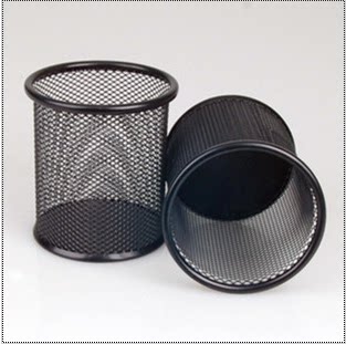 【满78包邮】圆形 方形金属笔筒 铁网笔筒 黑色笔筒 办公文具批发