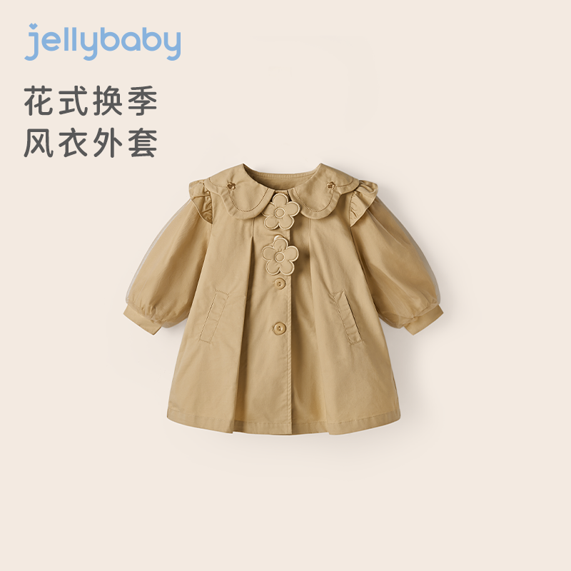 布丁哈鲁秋装女童上衣2025新款儿童春秋休闲复古风衣外套中长款