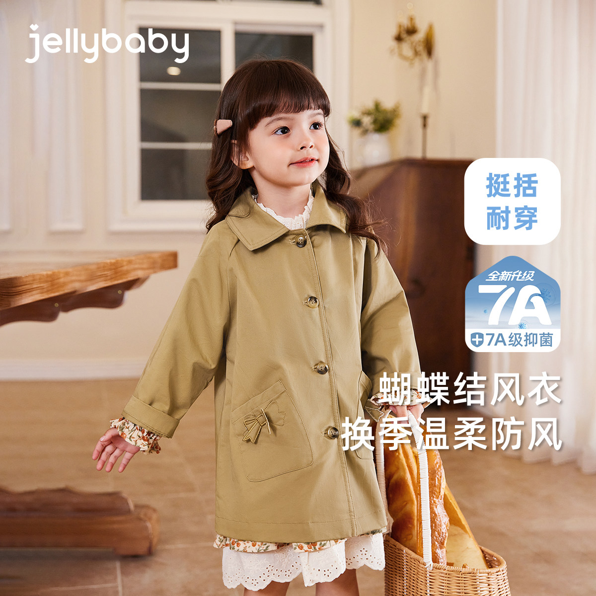 [7A抑菌]女童风衣春秋款宝宝秋季翻领外套纯棉小童中长款儿童衣服