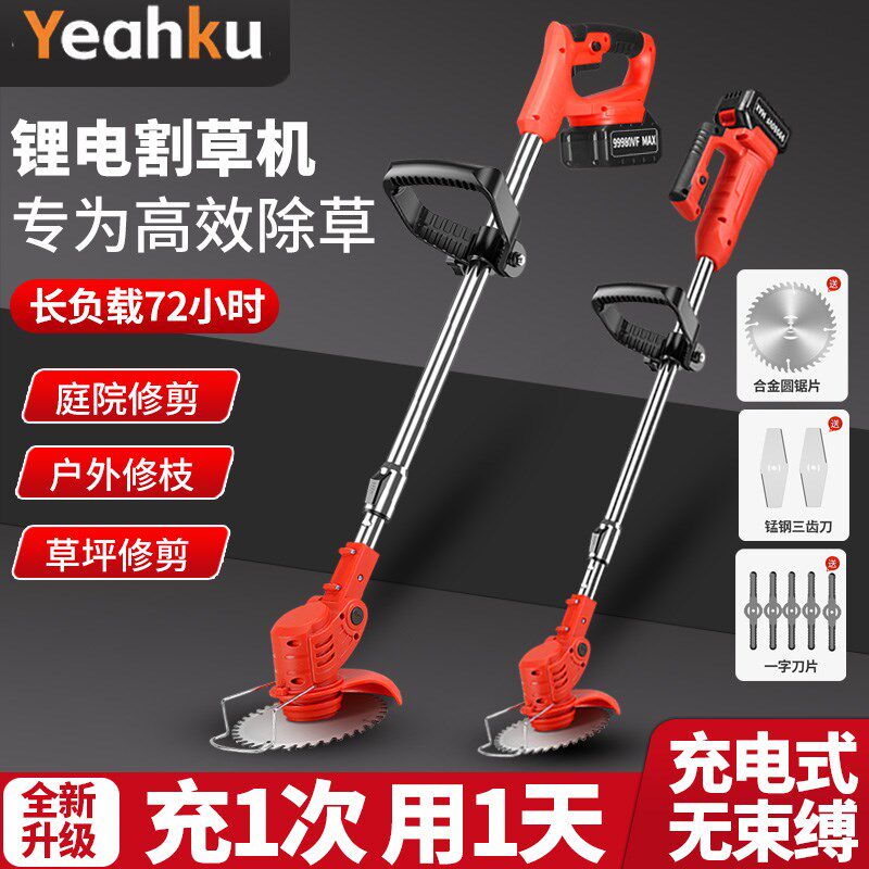 锂电割草机电动除草机小型多功能家用充电式手持修剪树枝刀片电池
