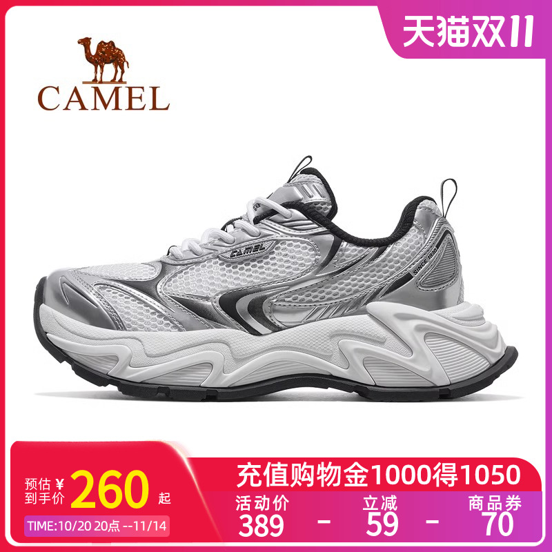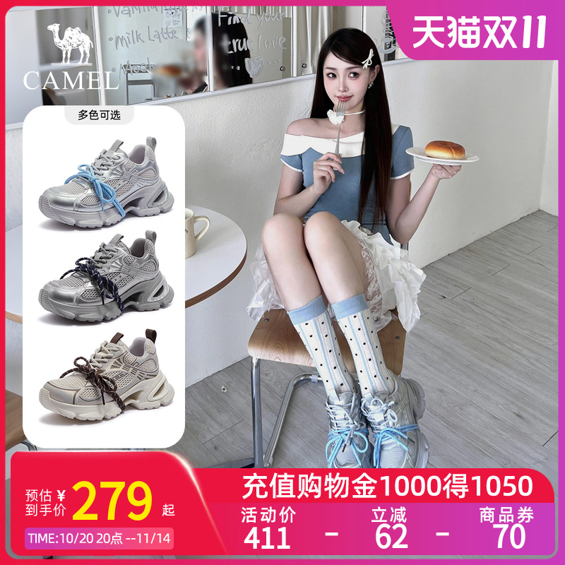 Camel骆驼女鞋2025秋季新款厚底运动银色增高老爹鞋女透气休闲鞋