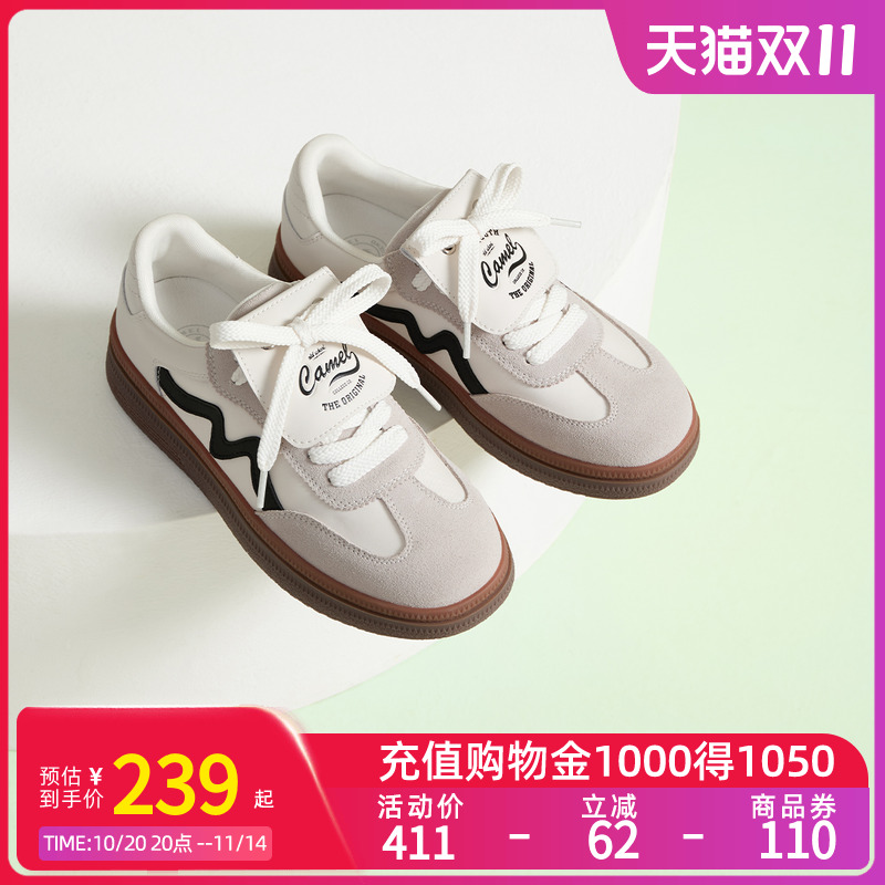 Camel骆驼女鞋2025新款复古撞色面包鞋运动鞋厚底小白鞋休闲板鞋