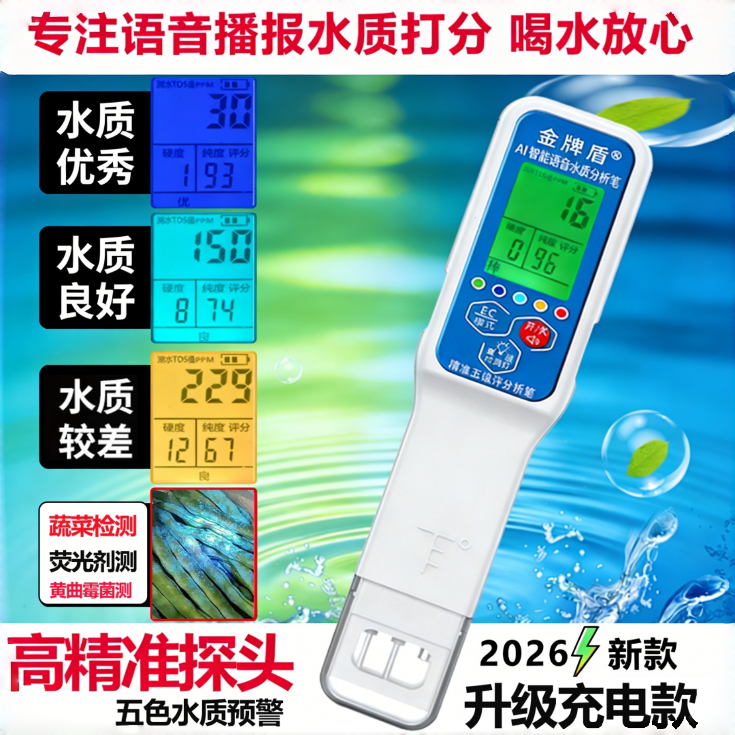 金牌盾TDS水质检测笔语音打分五色预警高精度家用自来水测试仪器