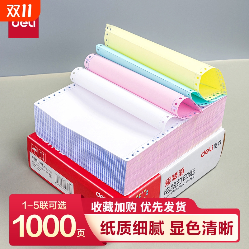 【彩色撕边】得力爱琴海针式打印纸三联打印纸三联二等分四联打印纸电脑打印纸二联两联票据五联财务发票清单
